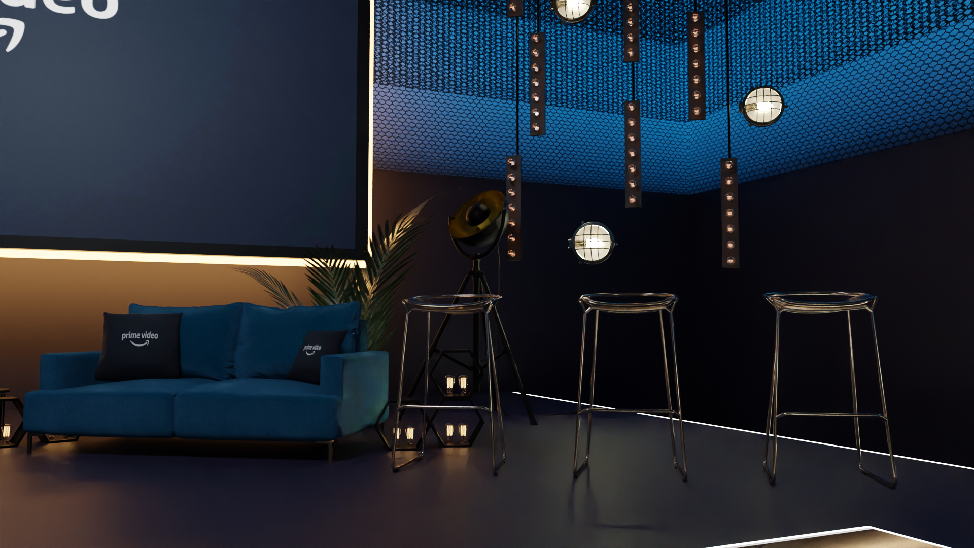 Through several rounds of exploration we were able to introduce warmer lighting and colours to the physical world of Amazon compared to what they traditionally would use for Prime executions. These warmer colours spilled from lighting through to furniture.